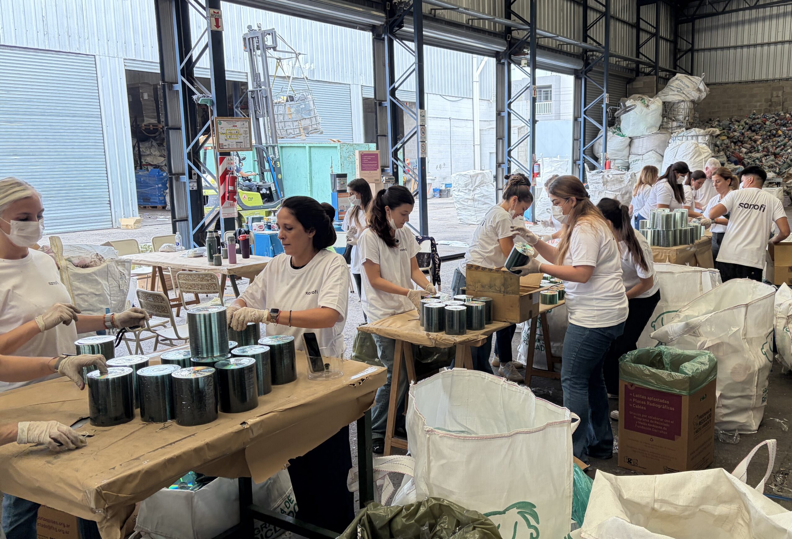 El equipo de la empresa Sanofi participó de una jornada de voluntariado en la sede de nuestro Programa de Reciclado y Medio Ambiente, en la que acondicionaron donaciones de materiales reciclables, y lograron clasificar más de 10 toneladas de CDs y DVDs.